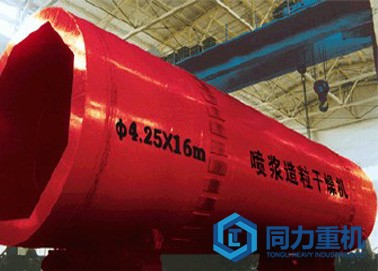 噴漿造粒干燥機(jī)工作原理熔融液體在高壓泵的作用下進(jìn)入特殊設(shè)計(jì)的霧化噴頭,被霧化成細(xì)小的液滴,并與回轉(zhuǎn)圓筒內(nèi)的細(xì)小顆粒晶核相接觸,液滴粘附在晶核表面在高溫干燥介質(zhì)的作用下,迅速完成熱質(zhì)交換過程,顆粒增大,增大后的顆粒被篩分,細(xì)小的顆粒返回作為晶核;也有部分成為粉狀物料,也被返回作為晶核.
